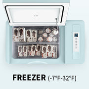 • BougeRV mint green mini fridge can be used as a freezer, with a temperature range between -7°F to 32°F.