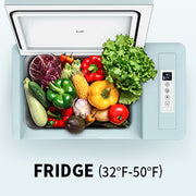Our mint green mini fridge is the perfect companion for your on-the-go lifestyle! This sleek and stylish mini fridge is designed to keep your beverages and snacks cool and refreshing, no matter where you are. BougeRV 23 Quart portable fridge utilizes compressor refrigeration technology to cool food rapidly, ensuring freshness within just 16 minutes. It is the perfect companion for road trips, camping, or any other on-the-go adventures. Upgrade your lifestyle with our mint green mini fridge and add a pop of color and functionality to your life.